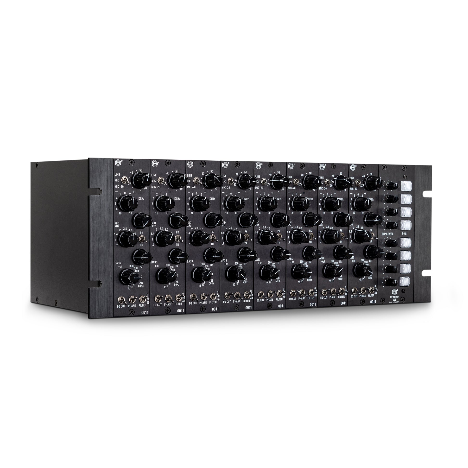From the original Helios desks that shaped rock’s most iconic records to today’s reimagined H2 Audio modules, the 008 Rack carries that legacy forward. Precision-engineered and hand-assembled, it ensures every 0011 Series module performs at its absolute best — with ultra-low noise, stable rails, and pristine signal flow across all eight channels.