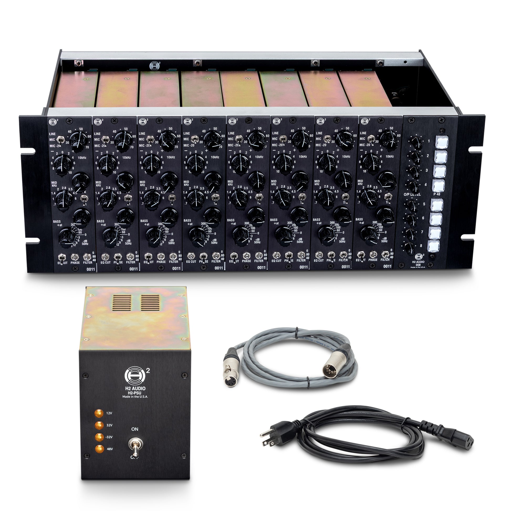 The H2 Audio 008 8-Channel Rack brings Helios modular power to your modern studio — crafted for engineers who demand the same sonic integrity, build quality, and flexibility that defined the golden age of recording consoles.